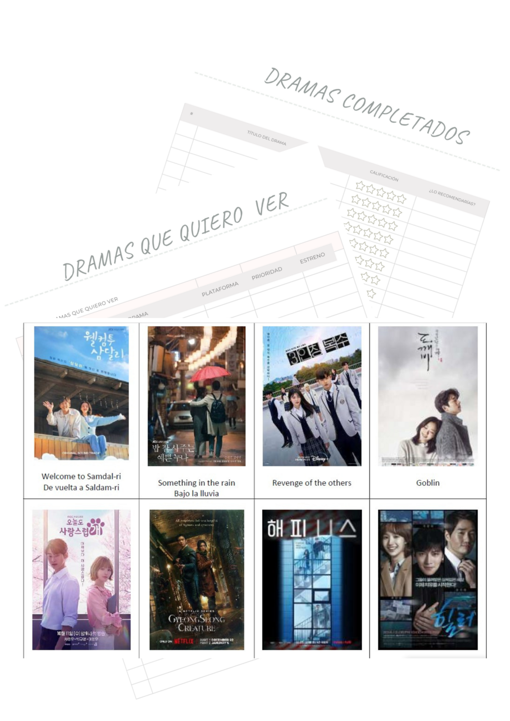 Con esta compra recibirás un PDF imprimible incluye más de 130 páginas que te permitirán reseñar más de 50 kdramas, stickers, fotos para imprimir y pegar en tu diario